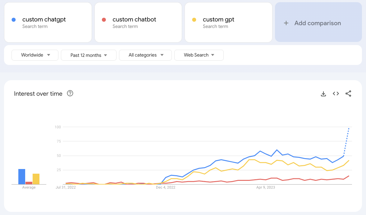 Arguably, the biggest and most popular use-case of LLMs following the zillion uses of ChatGPT is chatting with your data. Google knows this as custom chatgpt, custom gpt or custom chatbot and you can see how their popularity has soared.